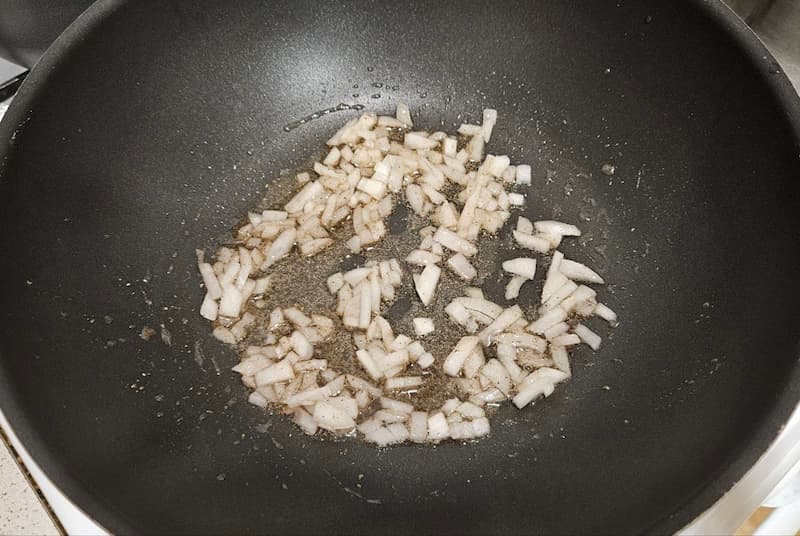 Разогрейте в глубокой сковороде 1 ст.л. растительного масла, добавте в него пряности. Так они лучше раскроют свой аромат. В пряное масло выложите измельченный чеснок и лук, слегка обжарьте.